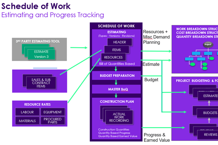 The Schedule of Work module in IFS ERP offers a comprehensive solution that seamlessly integrates the entire construction project lifecycle, from initial design to final analysis. At its core, the module is built upon the concept of a Bill of Quantities (BOQ), which serves as the foundation for accurate estimation, budgeting, and project execution.